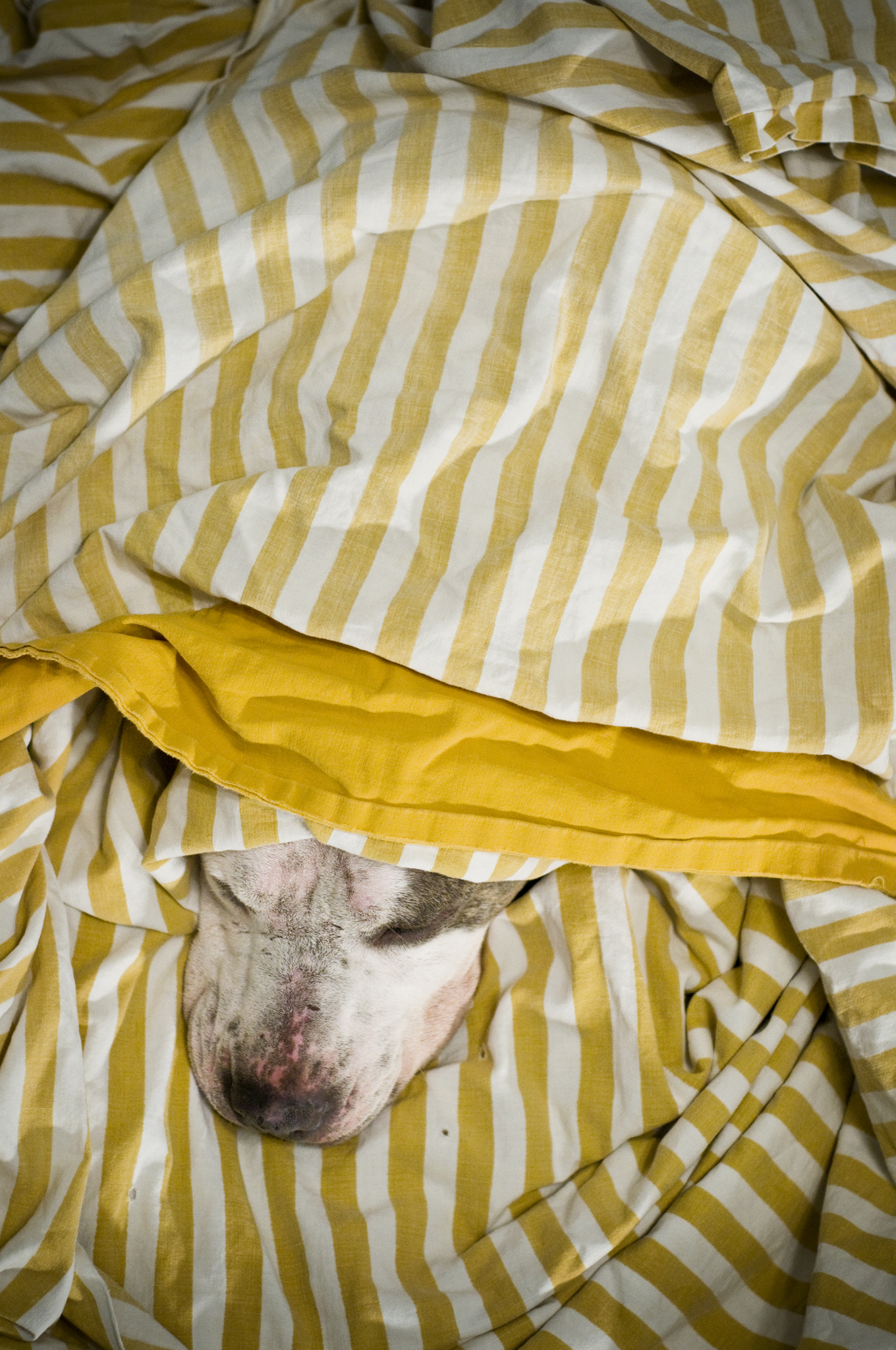 Lollie loves to snuggle. Sitting, standing, laying down; on the bed, on the floor, in the car, in the yard (ok, maybe not in the yard); morning, noon, and night; in a box or with a fox; with or without a pillow and blanket. She will gladly drift off to sleep covered up with a blanket in her room after a long walk, or curl up with her face in your lap as you read or watch a movie. She has a knack for finding the softest possible spot to lay and curling herself up into an impossibly small jellybean shape, with her nose tucked under her back paws, which are extended over her face in a diver’s full-pike position. Sometimes, her little paws and nose twitch while she sleeps, as though she’s dreaming of running through a field, chasing Max the rabbit.