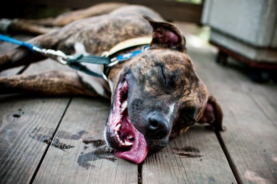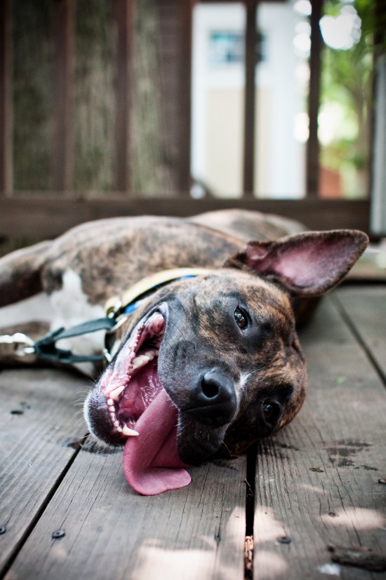 Me and Chick still like to go out though, even when the heat index was like 115 over the weekend. I used to think it was too hot too, but then my smart foster brother Chick let me in on a little secret: if you find a nice shady spot on the deck and lay real still except for the huffing and puffing and put your face sideways-like against the boards and make the funniest faces you can, it makes it not feel so hot anymore.