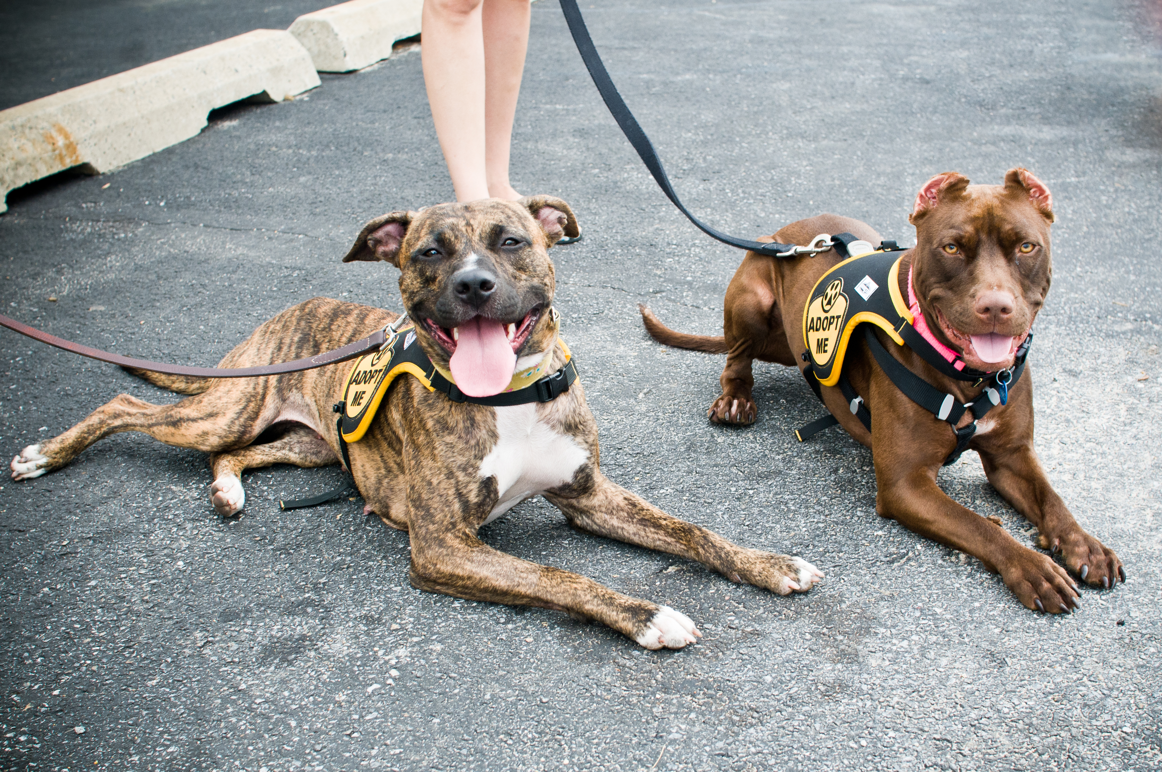 One downside of living in a major metropolitan area like DC is that the closest farm supply store is actually not very close by, so we had to drive for more than an hour to get there. But that was no deterrent — when our friend and fellow pittie rescue mom invited us, we knew we couldn’t pass it up, especially knowing that Stevie Wonder and our friend’s beautiful foster, Kayla, have the exact same adoption vest!