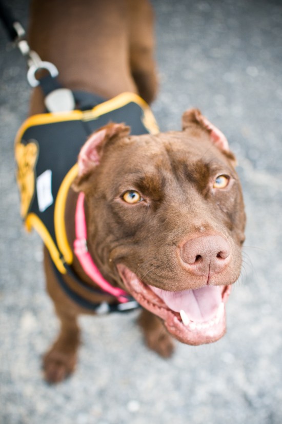 Unfortunately there were more adoptable dogs than potential adopters, but Stevie didn’t mind one bit. She loved the tractors, loved the attention, and especially loved getting to hang out with the brown pit bull crew from MCHS!