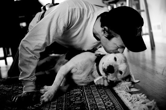 FosterMom often describes Chick as an “ambassadog,” which I think means that Chick’s charm, good looks, and positive attitude easily win over skeptics and show how loving these tough-looking dogs can be.  Common early reactions to Chick include, “He’s really a pit bull?  But he seems so friendly!” or “He’s so well behaved for a pit bull!” or “Does he bite?” or, my personal favorite, “He could turn at any moment.”  But Chick’s admirers quickly are convinced otherwise.