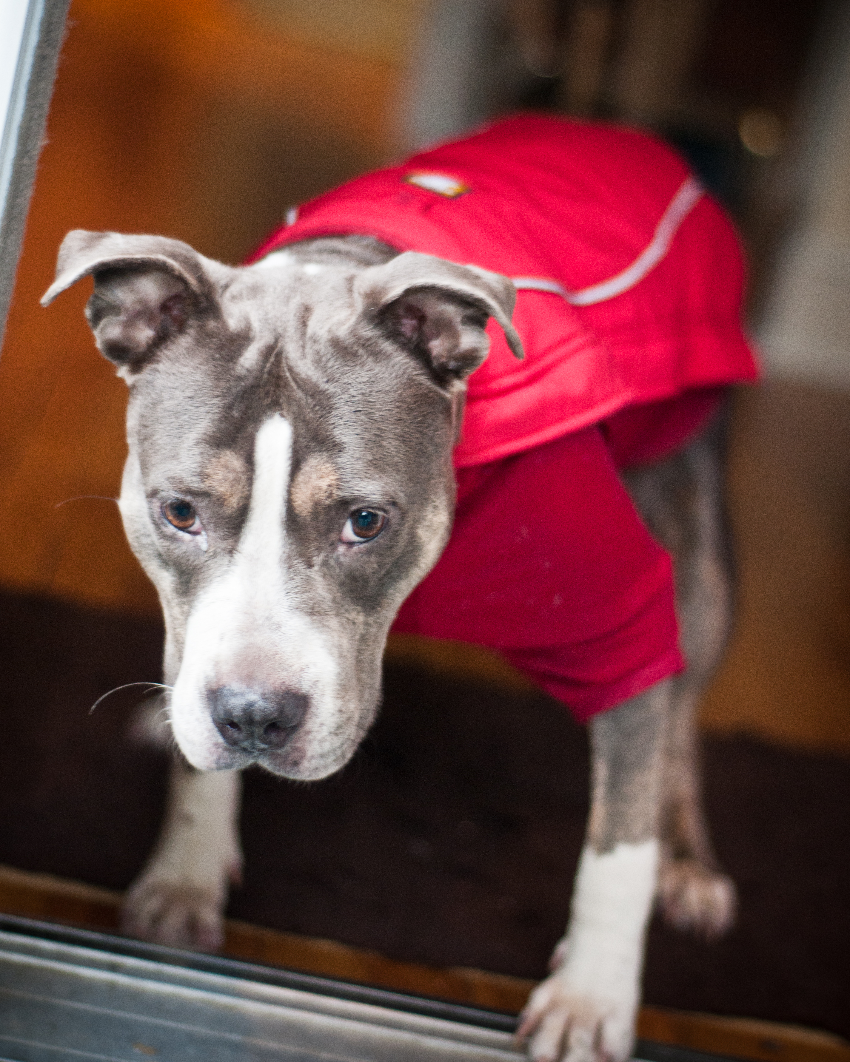A little bit of rain did not deter us from making a visit to the vet’s office for a nice thorough exam, a full set of vaccinations, and some compliments on her cuteness. Zee is a bit of a sissy in the rain, but once she got Chick’s waterproof coat on, she hardly even noticed the rain drops that were falling on her head.