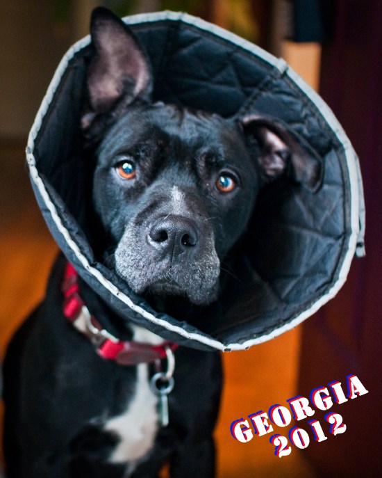 That e-collar caught my attention. One of our furry family members has frequent ear problems and very irritable skin. We’re working on fixing the root of the problem but for now he has a dreadful plastic e-collar and it can be problematic. Big dog means big cone, and it hits and gets caught on everything in the house and yard. How do you like the soft one that Georgia’s wearing here?