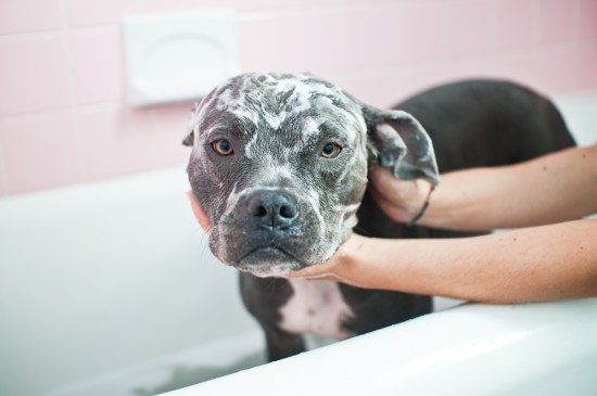 We use the vanilla or oatmeal flavor of a brand called 8 in 1. Very gentle and doesn’t have a chemically smell. It’s available at the big chain pet stores.