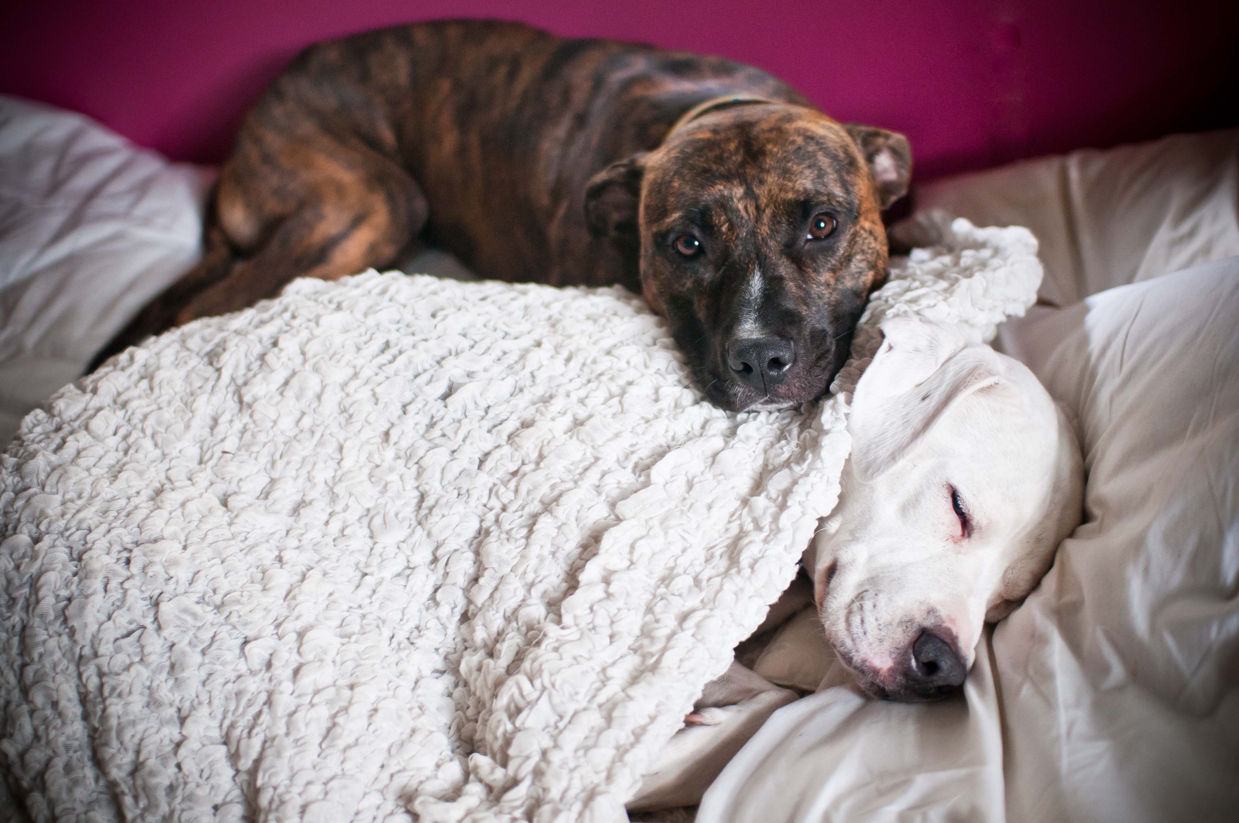 Then was an energetic youngster named Gonzo Bunny-Ears. He was a whole lot of dog wrapped up into a tiny, 35-pound body. My dad called him “a cinder block covered in fur.” He was obsessed with me too. When mama got him from the rescue he was pretty mucha ready-to-go house pet, but I did teach him a thing or two. First, I taught him about not sitting in forbidden chairs. Then, I taught him how to eat his veggies. Then, I taught him how to properly share a dog bed with a larger dog. I am a smart Chick for teaching him that last one, because he went and adopted himself a 95 pound Presa Canario sister. Smart, smart, smart.