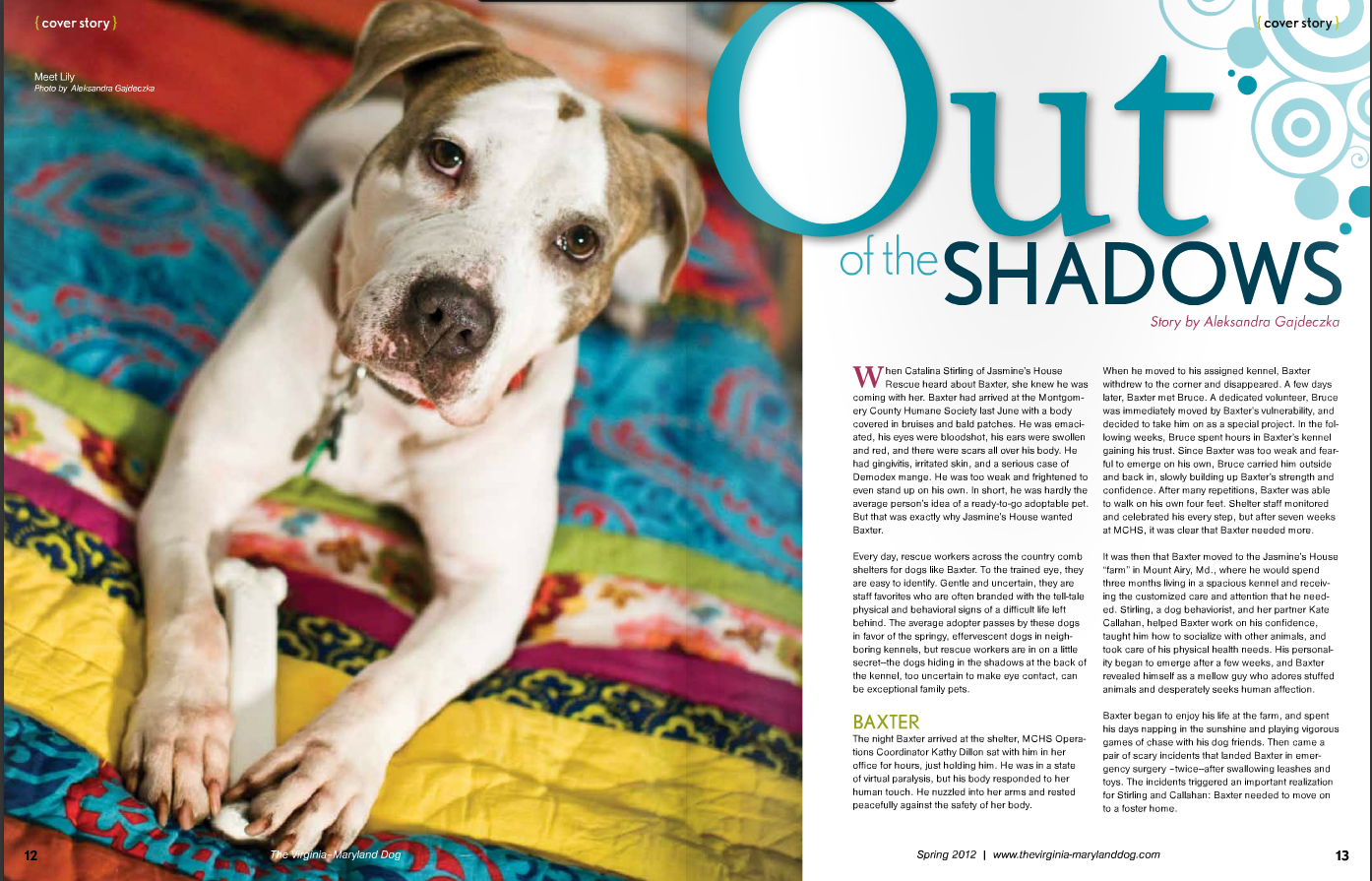 We’re excited to share our first real publication — the cover story for the up-and-coming regional pet mag, The Virginia-Maryland Dog! The publication is in its first year, but is already distributed to thousands of dog-loving households in the greater Maryland / Virginia region, and it’s gaining momentum as it goes.