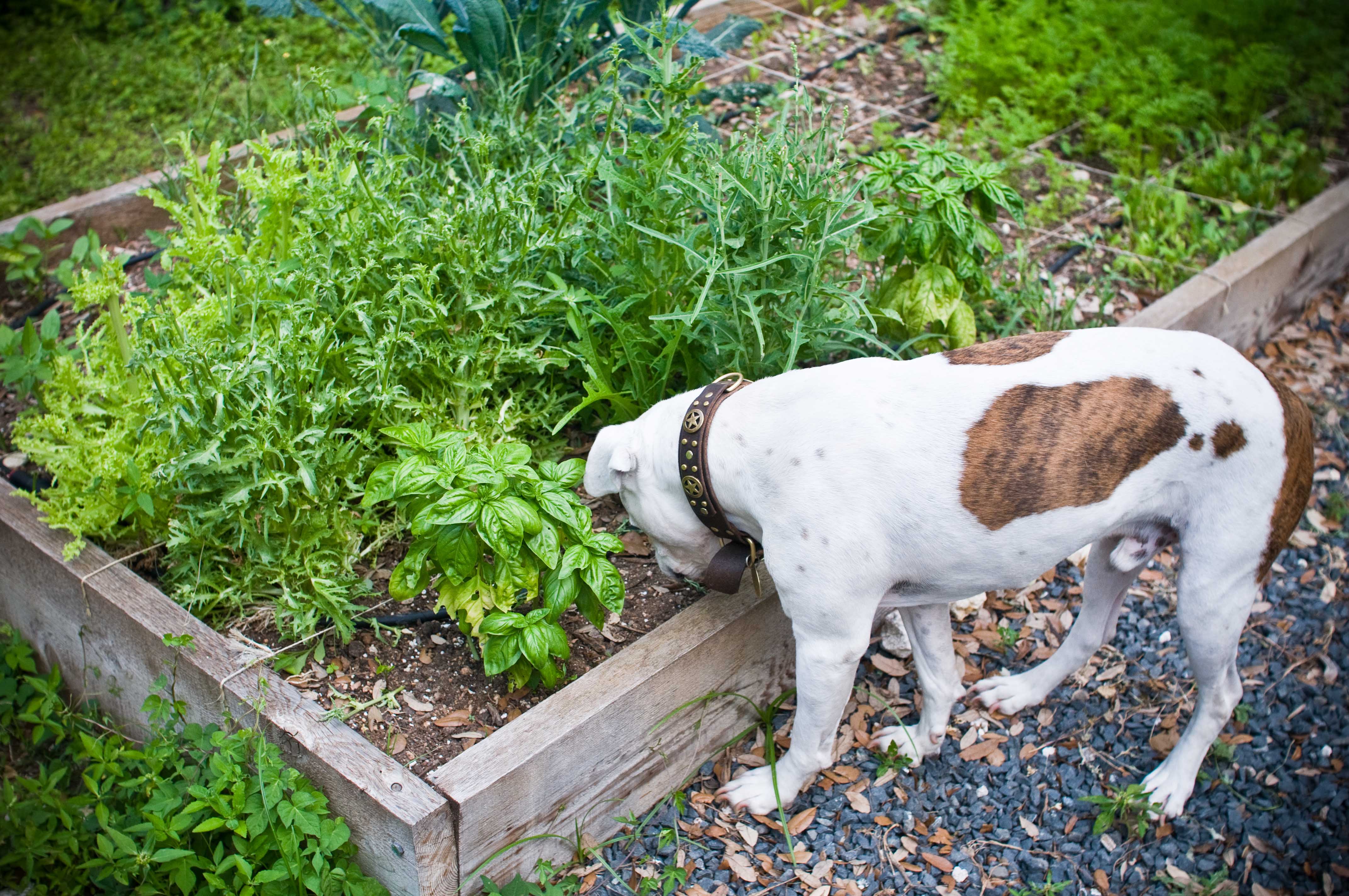 Moving right along, I’d like you to meet my miniature cantalopes and my green beans (and behind them, my cilantroes, my chives, my thymes, and my oreganoes). Sometimes I get to snack on cantalopes and I love it so much that I dream about them at night. Mama and dad picked out mini cantalopes to put in our garden — I’m not sure why, but I bet it’s because I will be able to fit them in my mouth whole, without having to bother mama with cutting them up. And I’ve also heard from my dog trainer friends that cantalope can be good for chilling out a dog that worries, isn’t that cool?