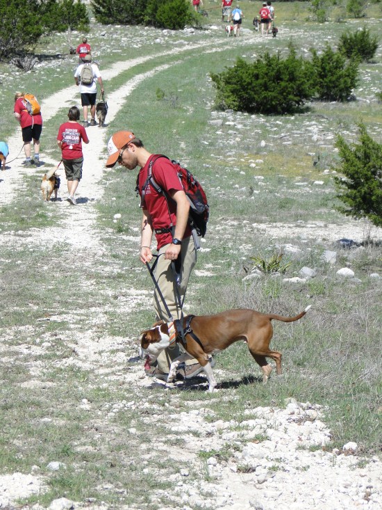 3. Panic. After sufficient testing in which the dog proves that she does not, in fact, know what is expected, most of us with reactive dogs get to this phase. And it’s not a fun one. Only the experienced dog handler — or the person who came into the situation understanding that she is dealing with a reactive dog — can skip over this stage altogether. The panic phase is characterized by the kind of handling that actually exacerbates the dog’s reactivity rather than helping the dog make better choices. Every time we seize up on that leash or yell at a dog who is barking and lunging, we are sending a message: “There is indeed something to be worried about. I am worried too.” For sensible and experienced dog handlers, this phase is short-lived. You realize that you don’t know what to do and your dog certainly doesn’t know what to do, and you call in professional help. For others of us — especially novices like I was when I adopted Chick — the panic phase can last months or years. During this time we can accidentally be training our dog to be aggressive, by sending the exact wrong signals during moments of stress. We sometimes joke that you have to first train a dog to be aggressive before you can become a good dog trainer — and at the center where we train, it’s true of almost all of the staff. The panic phase is a dangerous one, so it’s best to take a deep breath, have a stiff cocktail, and regroup as soon as you’re able. You can work through it! We panicked for a year and a half with Chick before we sought help; with the Dude we were in this phase for two days — from last Sunday until this past Tuesday.