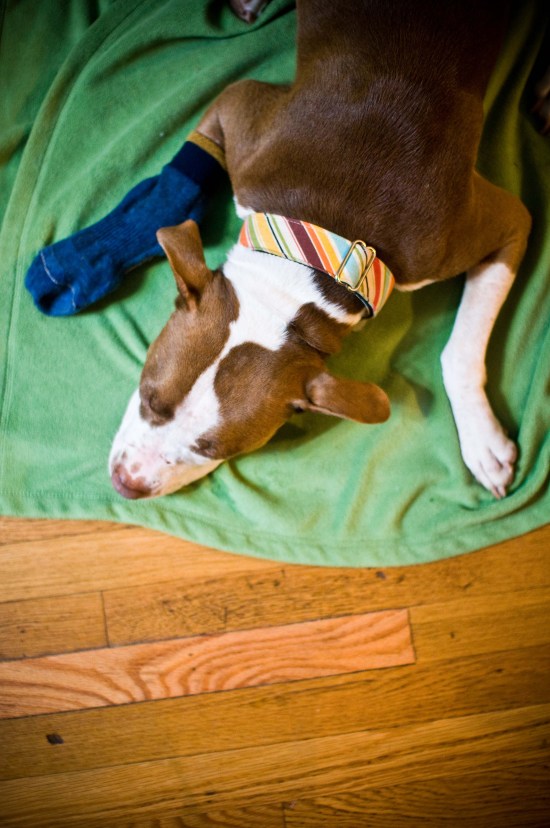 AWWWW!! So cute! I can’t believe he’s letting that happen. I’ve never had a dog that let me put socks on them without ripping them off immediately.
