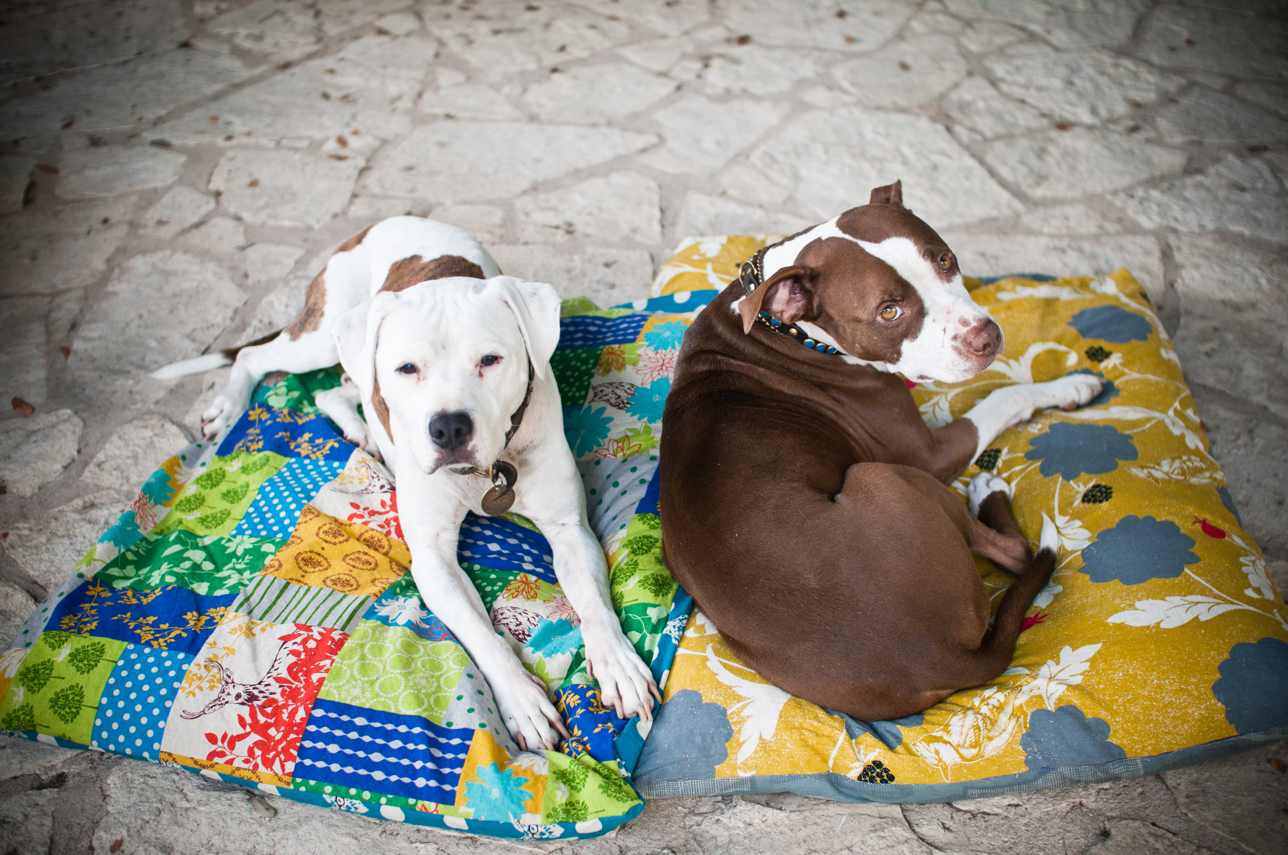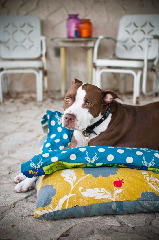 Well after we tested them out, we oohed and aahed over how lovely they were and how very smart mama must have been for being able to make them all by her lonesome. She said nah, they weren’t that hard (and trust me, that makes sense because mama is NOT a very talented seamstress). She just took the covers off some of our old dog beds, measured them, and made the new covers just like oversized pillow cases. And even we dogs know that pillow cases are just about the easiest thing to sew. In an afternoon, she was done!