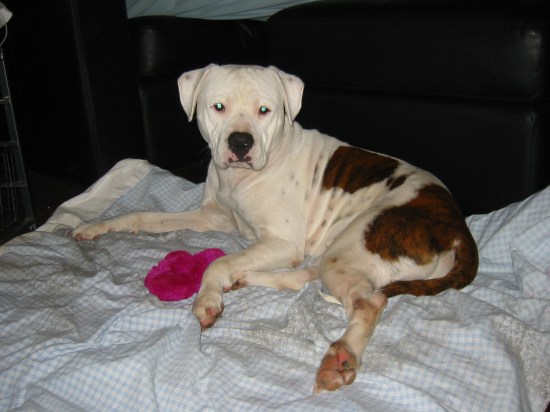24. We got our dog as a pup and named him Petey because the dog from Little Rascals was also a pit bull. But now we have all kind of names for him, from Waggie (because he’s always happy and wagging) to Moose, because he’s so big and often clumsy. He’s our first dog and has just been diagnosed with thyroid cancer at the age of 11. Don’t know what I’ll do without him.