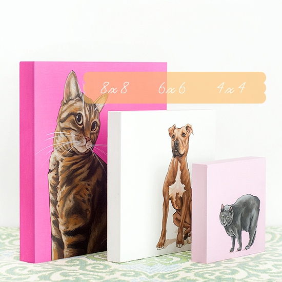 And in conjunction with the new online shop, Kim is launching a new painting size — a glorious 8-inch piece. We have chosen six-inch paintings for both me and the Dude and four-inch pieces for each of our fosters (still in progress), but boy oh boy are we drooling over this new giant option. Mama is thinking of adopting more animals just so she can justify buying one for herself. Oh no!