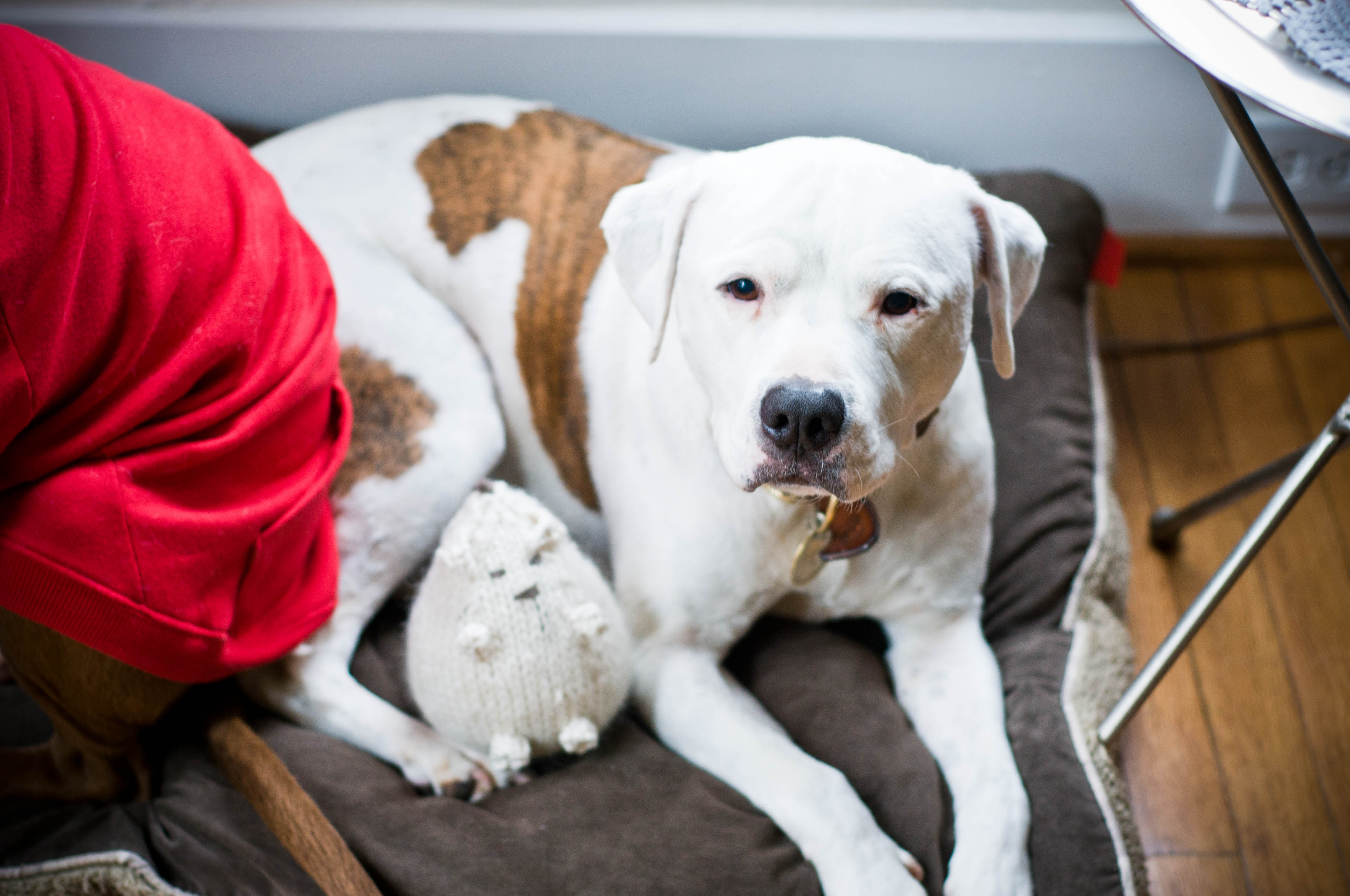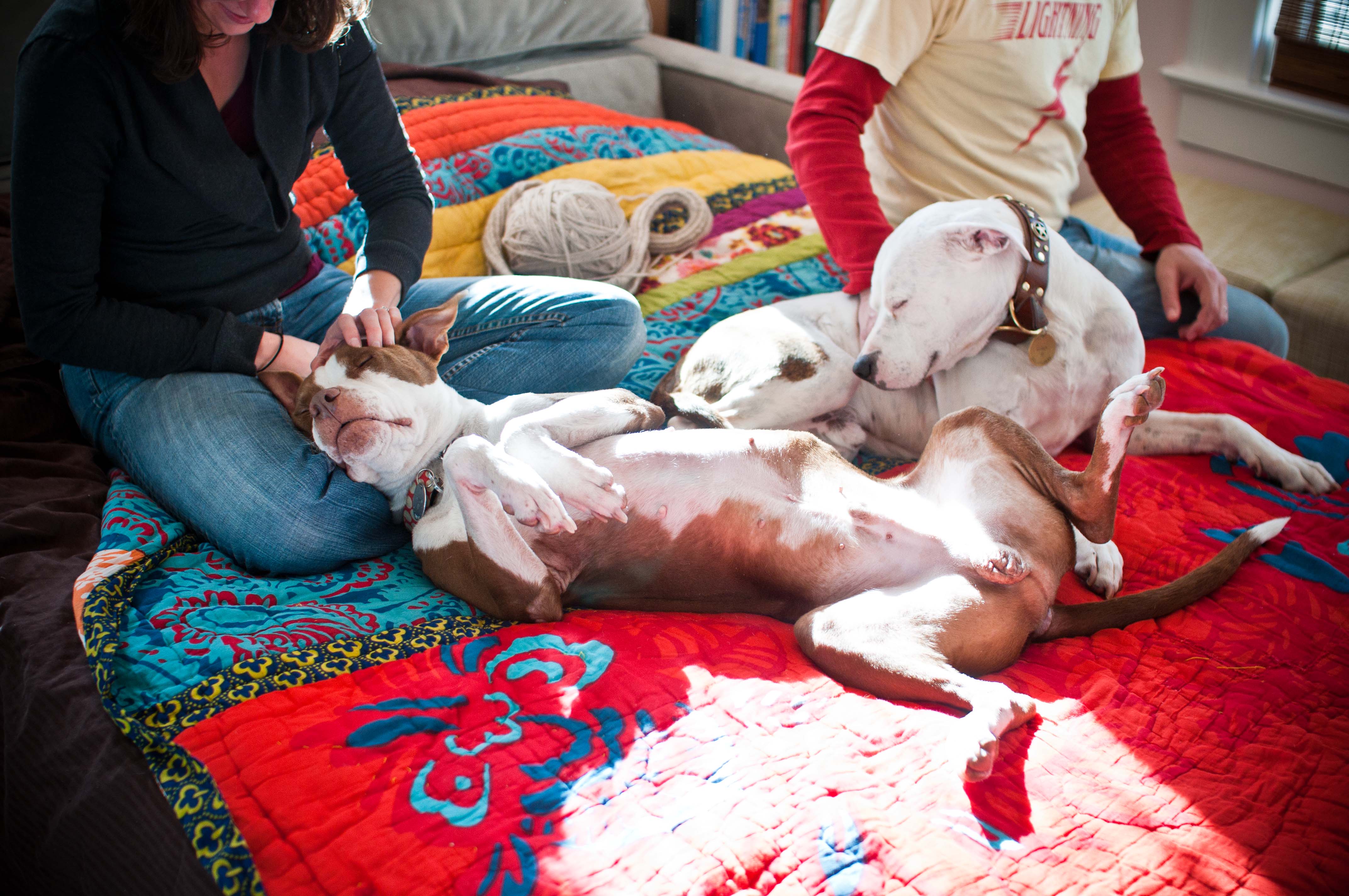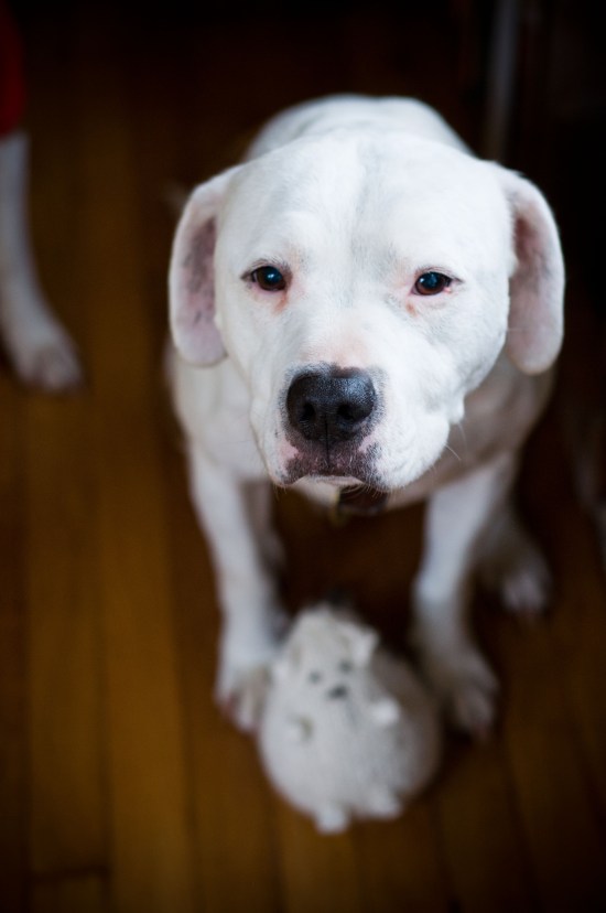 Lily is a big huge, licking, stinking butt, monster commitment, but we adore her. And she has come a long way: Just last week she was attacked by a miniature schnauzer — yes, a 20 pound schnauzer attacked Lily on a run. The dog was off leash and came charging at us. I stopped running and panicked! Lily immediately sat down. The dog was baring her teeth, growling and then jumped on Lily. As this happened, I immediately saw headlines written all over this, if Lily reacted in any way to this off leash dog . . . The dog jumped all over Lily and she just sat there looking at me like an angel. After what seemed like forever, but was probably just a minute or two, the owner came flying out her door, yelling “OH MY GOSH! IS THAT A PIT BULL?!?!” She came up to pull her schnauzer back, and as she did, the dog nipped her hand. I suppressed a smile and said “yes, she is,” and led my well-behaved dog away.