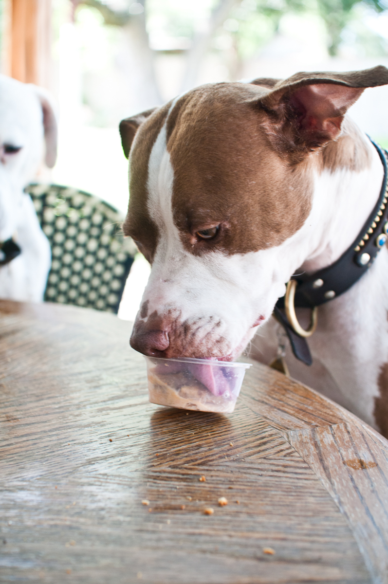 Needless to say, the boys loved their treats. Chick took one lick of his ice cream, his eyes got wide, and he grabbed the whole cup in his mouth and bolted across the yard to his favorite eating spot to devour it. Meanwhile, Doodlebug maintained his discipline like a gentleman and licked at his ice cream diligently for a minute or two before also succumbing to the urge to crunch it all down in one heavenly gulp.