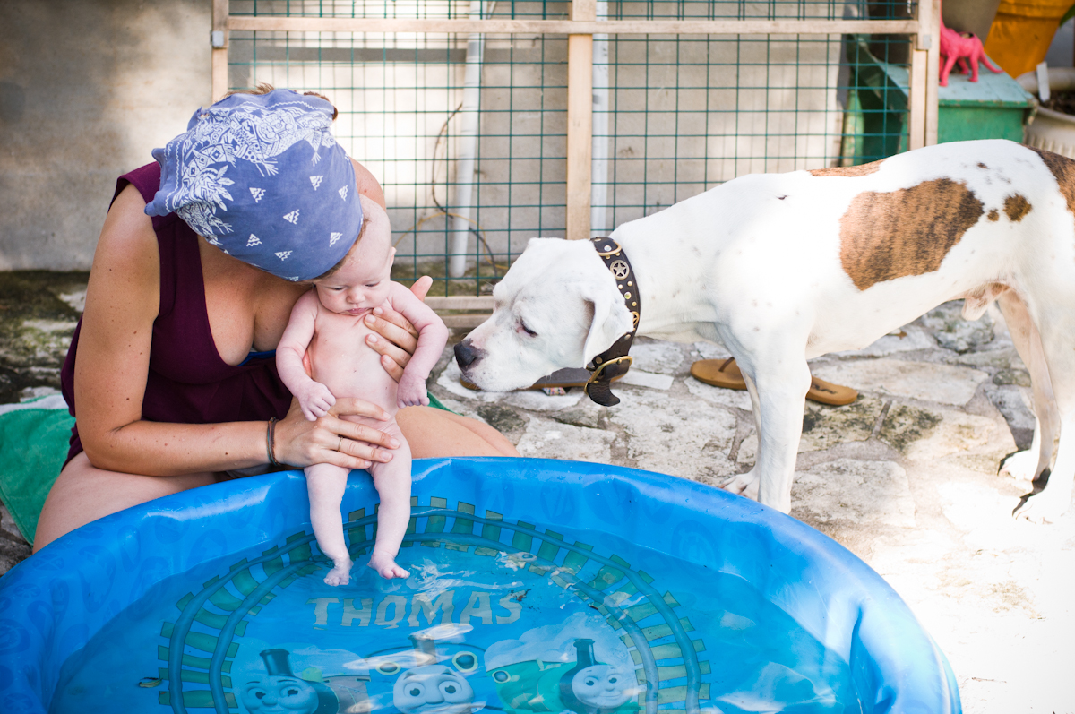 So now, all of our interactions are monitored. If either dog shows the slightest sign of being nervous or too excited, we gently invite him to walk away. The message? If you are nervous, you don’t have to stay. The dogs both seem to appreciate this, and now enjoy spending time in the presence of Puppy E without feeling any pressure to stay or to go. As Puppy E gets older and becomes mobile, new challenges will pop up. But we are betting that by setting up the relationship between the dogs and baby correctly from the start, we will be better able to face these challenges gracefully.