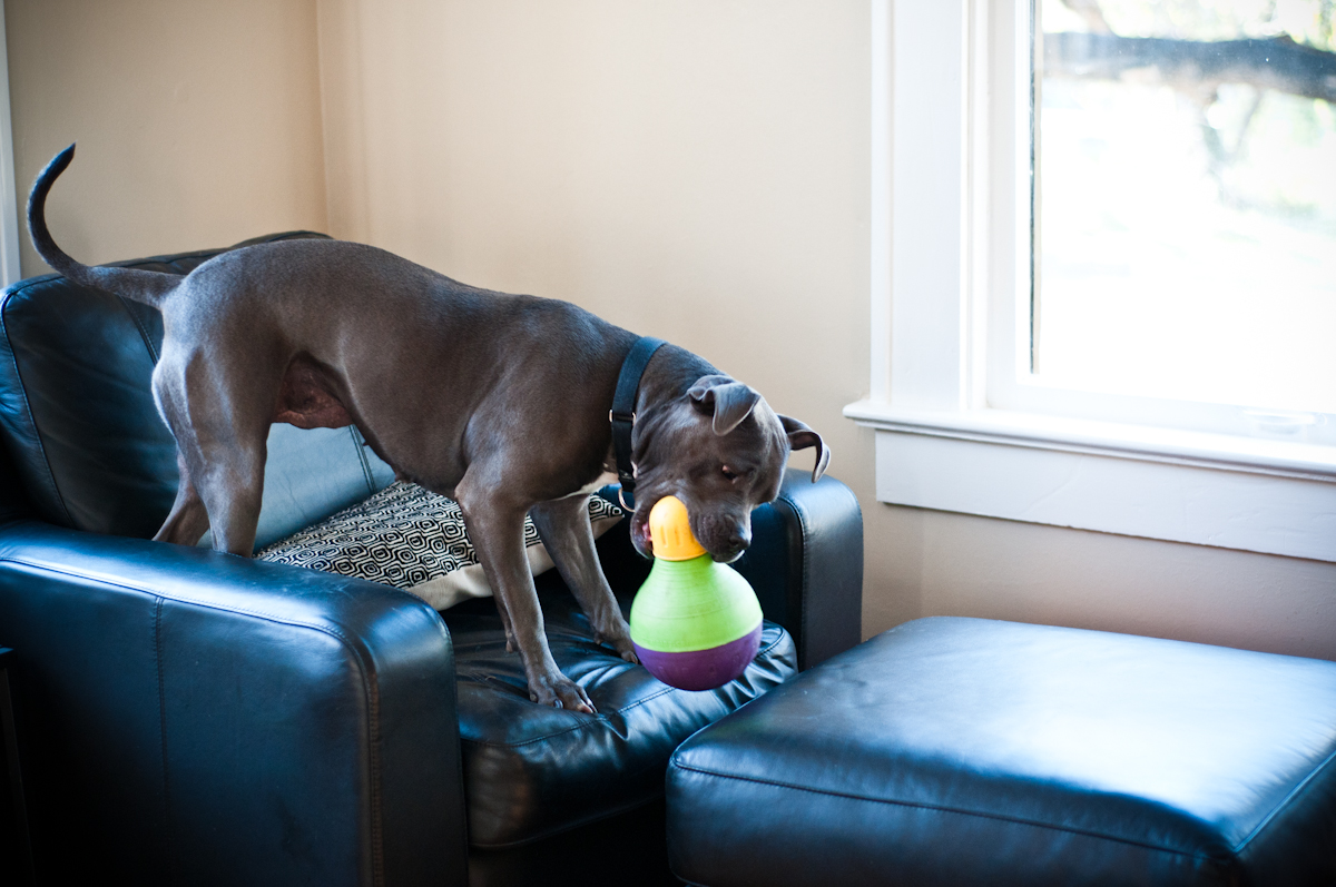 Puppies are gluttonous beasts! If left with a full bag of Puppy Chow, Ruddy would eat until he got sick. However, if you store the dog food in large plastic, airtight containers, you will save money on carpet cleaner and dog food.
