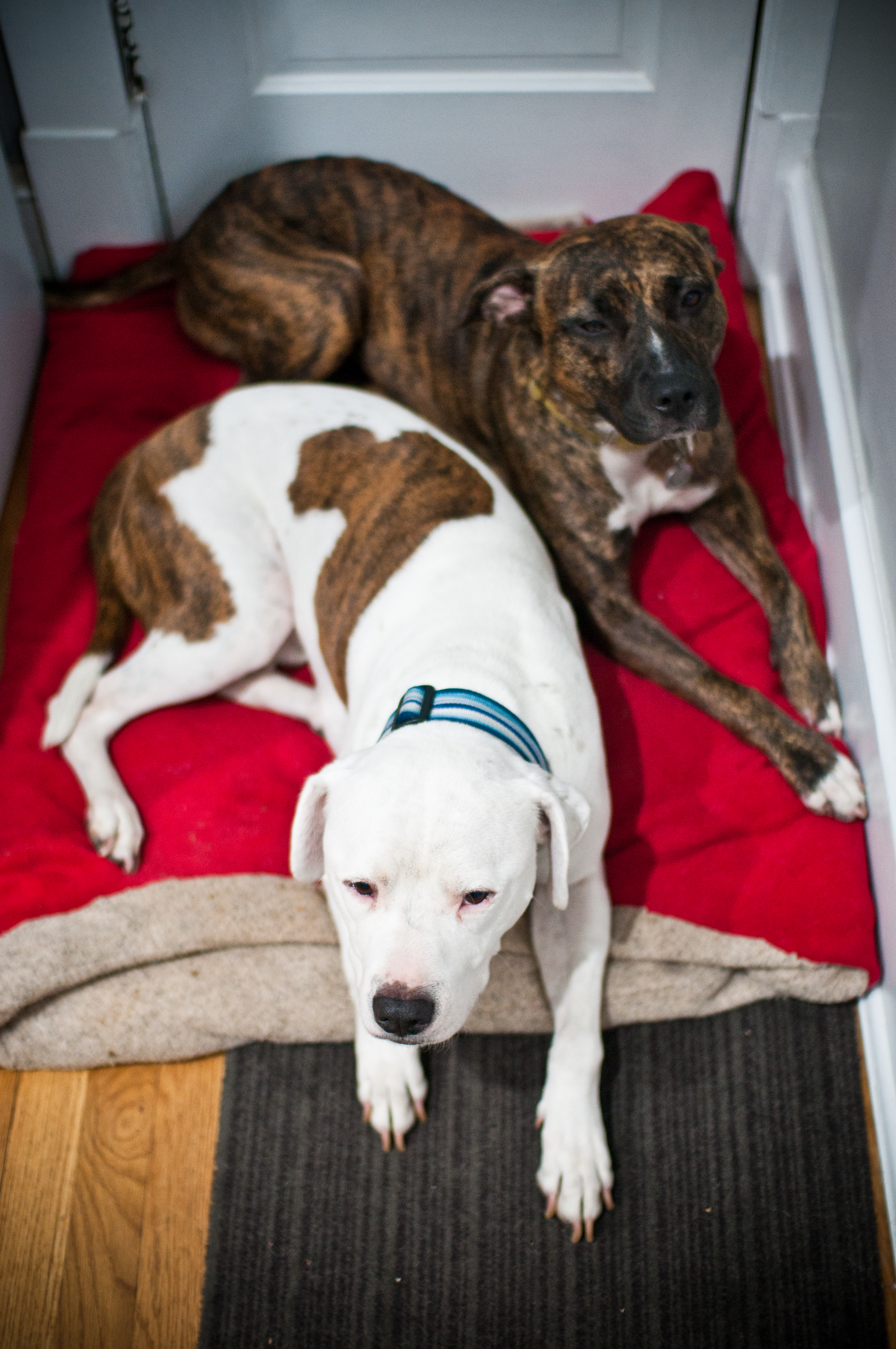 You see, Paul and Liz love another dog — a sweet Boxer / Pit mix named Rosie, who left this world earlier in the year after falling prey to a brain tumor. Rosie was their first child and their first dog love. They will always love Rosie, but in Stevie they saw something of Rosie. In Stevie’s sensitive brown eyes they caught a glimpse of the same sweetness, tenderness, and the big, jubilant personality that Rosie had.