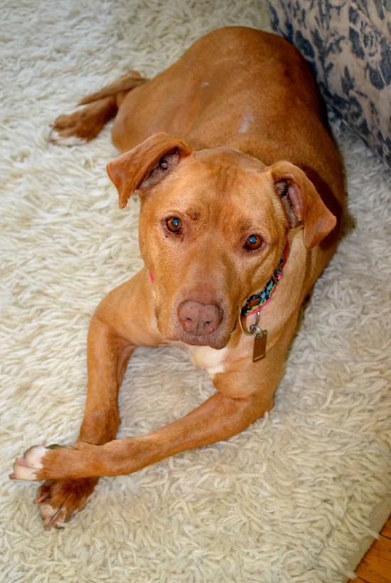 Well, we hopped in the car. I wouldn’t have known to call it that back then, I hardly knew anything at all. But The One has taught me a lot over the years. It smelled nice in the car, and the dog bed in the back was soft and cozy and not at all covered in dog food or drool or fur or pee. What a nice change. I was sleepy, but too nervous and excited to take the long-overdue nap I wanted. We drove for a while, and then we were there. I knew that because she told me: “We’re home!” And I didn’t know what that meant either, but I could tell by how she was smiling even though her eyes were watery that this was a good thing.