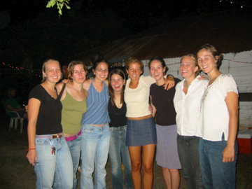 the girls. i shoulda been in the picture too, but i was off hunting for chicken bones or playing soccer with my friends. mom's in the middle there, and the two other girls who came to the slammer to meet me are to your left of her.