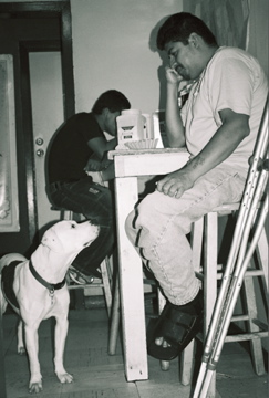 The funnest thing about my job there, other than getting to hang out with my One every day and eating chicken bones that the guys left in the yard even though the girls asked them not to, was getting to meet so many different people and change their minds about dogs as handsome as me. For some reason, a lot of the newcomers thought that if a dog was as gorgeous as me, he must be something to be frightened of. Perhaps they were worried that they were going to rub off my gorgeous white furs, or wipe away my beautiful brindle patches? Well in any case, lots of people thought they didn’t want to get near me at first, but my expert wooing and cuteness won them all over — from elderly blind men from rural Mexico to tiny babies from Honduras. I won them all.