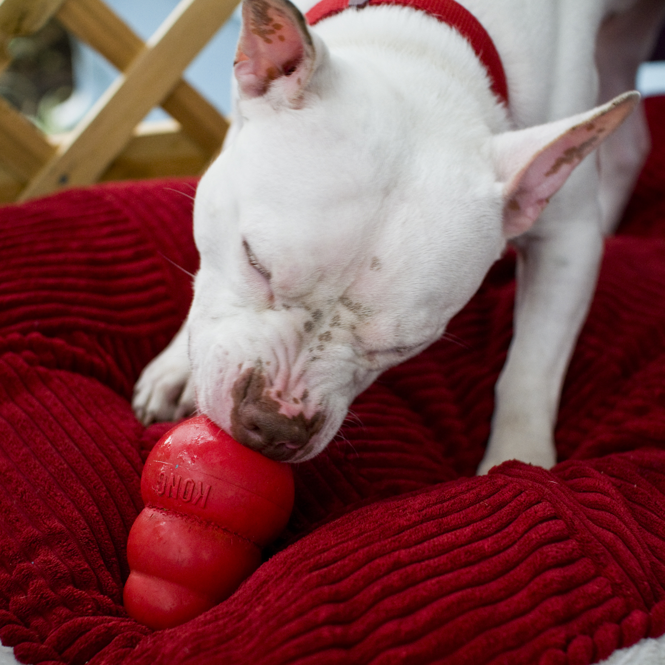 Gonzo loves playing tug, hanging out with other dogs, and helping out in the kitchen, but possibly more than all of these things, Gonzo loves romancing a kong. His tenacious terrier nature really goes on display when you give him a food-stuffed kong to chew on. You can almost hear his little heart sing in happiness. Even his ears are cocked in concentration: